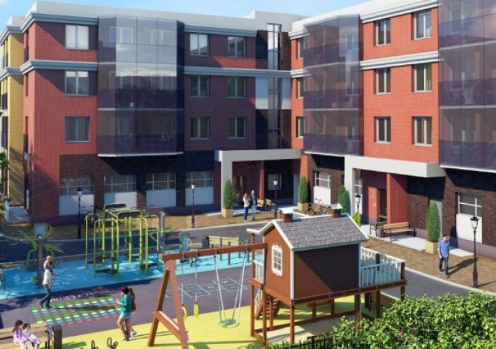 Жилой комплекс Аура –это четырехэтажное кирпичное здание класса «комфорт» с разноцветным фасадом Г-образной формы.