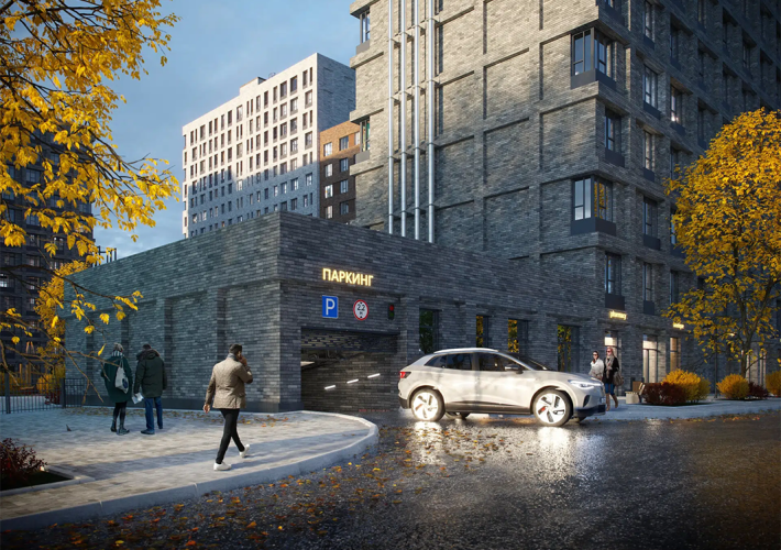 Территория жилого комплекса закрыта и свободна от машин, что обеспечивает дополнительную безопасность для жителей. Видеонаблюдение и охрана следят за порядком. Для автовладельцев предусмотрен подземный паркинг с доступом на лифте: для жителей выделено 67 мест, а для гостей — 86 мест.