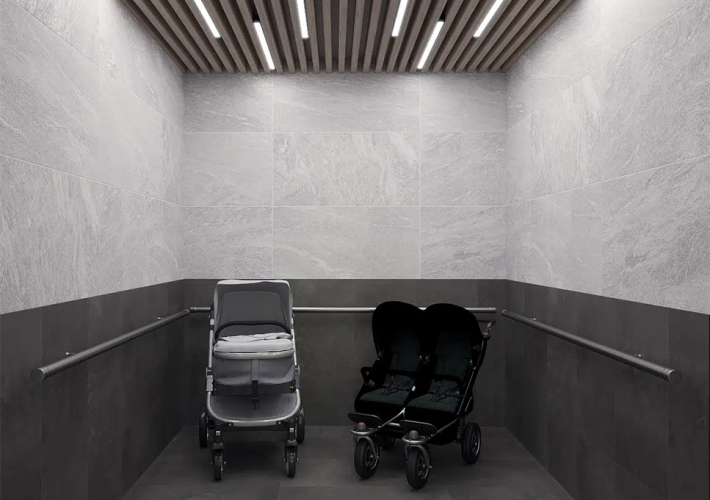 Территория комплекса включает наземный паркинг для автомобилей. Для юных жителей создана безопасная детская площадка с антитравматическим покрытием. Спортивная инфраструктура представлена воркаут-зоной с уличными тренажерами и турниками, а также веревочной пирамидой и канатным комплексом.