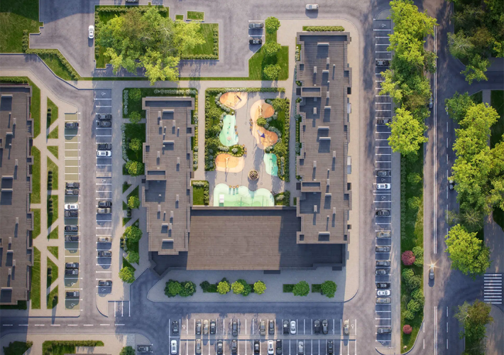 Наземная экопарковка на 128 машино-мест предусмотрена для владельцев автомобилей. Территория жилого комплекса благоустроена с учётом потребностей всех жителей: игровые городки для детей разных возрастов с современным оборудованием; спортивные площадки с теннисными столами и тренажёрами для workout; зона street workout с уличными тренажёрами и турниками, столом для пинг-понга; цветники, кустарники, газоны.