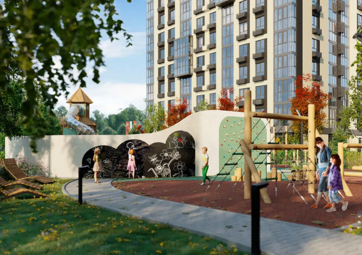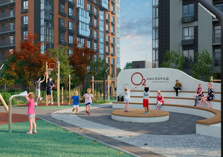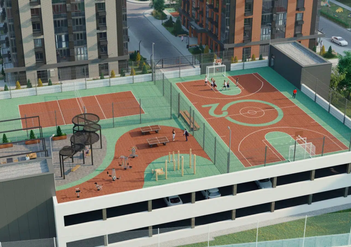 Придомовая территория благоустроена согласно концепции закрытый двор-парк. Детские и спортивные площадки, тихие и уютные места для отдыха и работы на свежем воздухе — в закрытом безопасном дворе созданы все условия для жителей любого возраста.