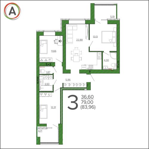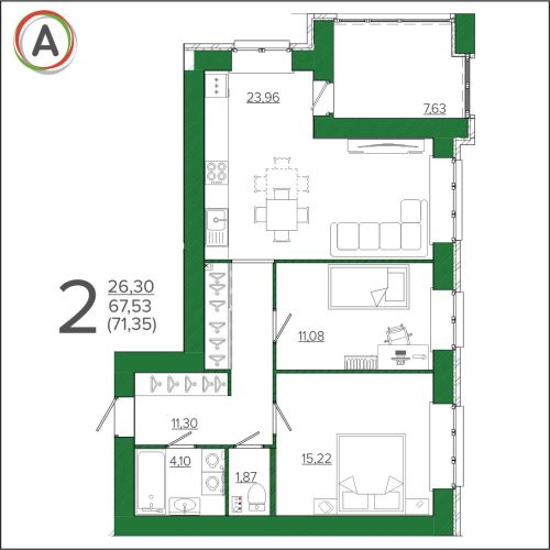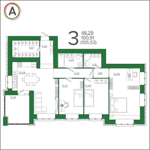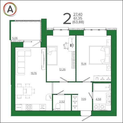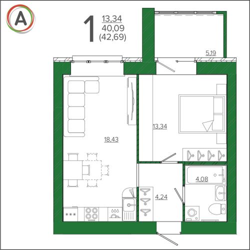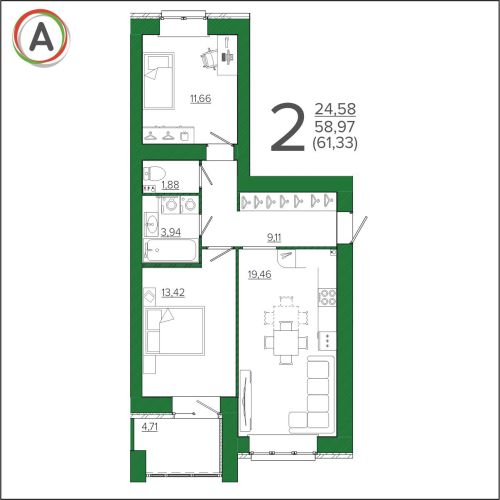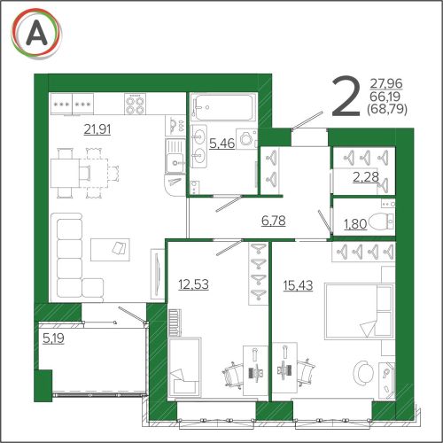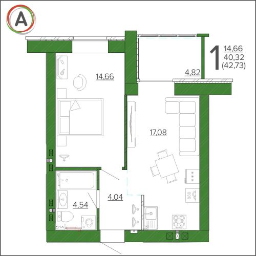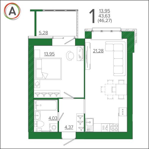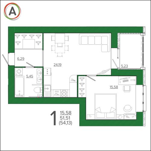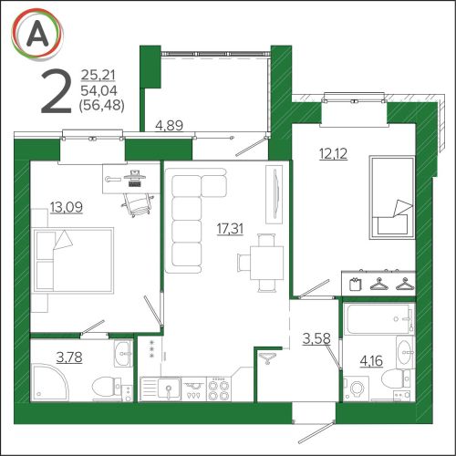 - 42,59 - 54,12 м2