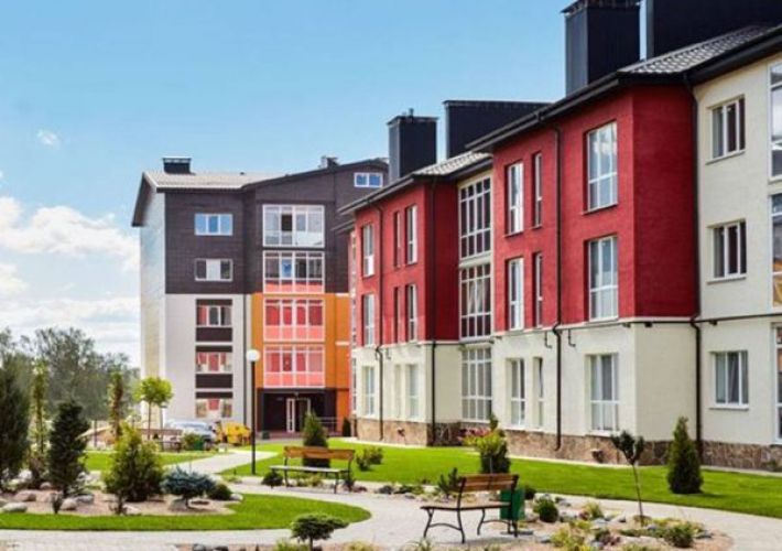 Первый этап – малоэтажные дома (3-5 этажей, расположены слева от въезда в жилой комплекс). Строительство первого этапа завершено.