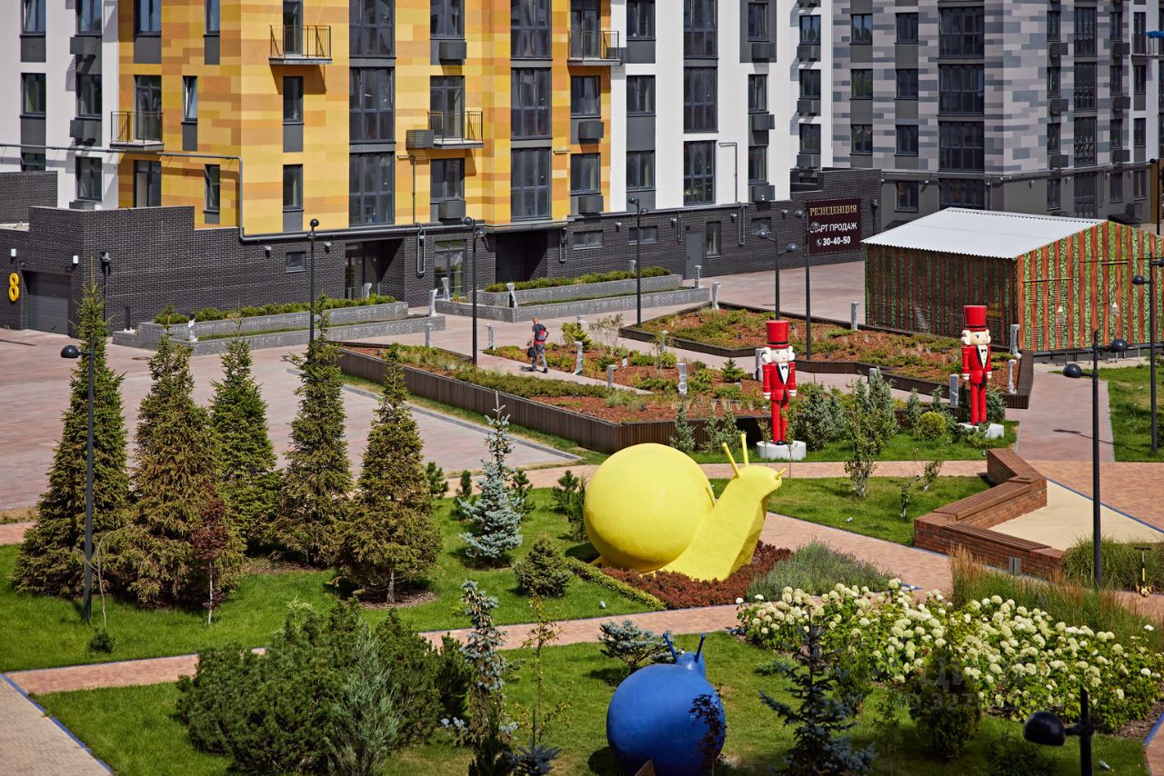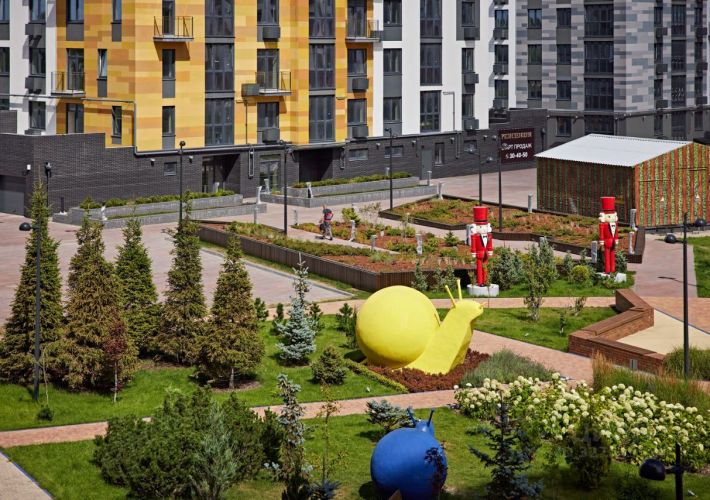 По задумке площадь сочетает в себе прогулочную зону, пространства для отдыха, занятий спортом, игр для детей разного возраста, а также красивейший ландшафтный парк. Двор в жилом комплексе Резиденция ГринПарк спроектирован по принципу «территория без машин, для людей», парковки для автомобилей размещены за пределами внутренних дворов.