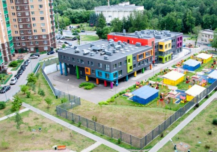 На территории просторных дворов размещены игровые и спортивные площадки для детей различной возрастной категории. Уже работают детские сады и школы.