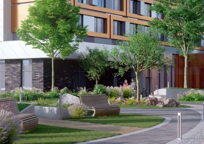В комплексе есть свой детский сад, медицинский центр, воркаут-комплекс, универсальные спортивные площадки, велосипедные дорожки и парковки.
