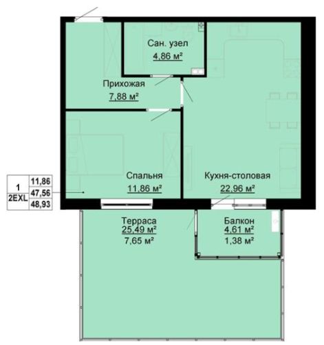 - 55,4 - 66 м2