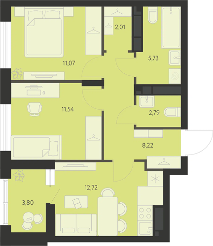 - 70,5 - 77,8 м2
