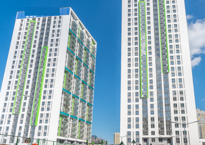 Высота зданий в комплексе от 16 до 32 этажей, на этаже от 3 до 12 квартир в зависимости от дома, в каждой секции установлено до 4 лифтов. Холлы оборудованы стойками-ресепшен, где размещается консьерж-служба, мягкими зонами ожидания, местами для хранения колясок.