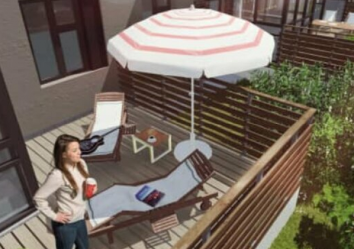 Одна из особенностей 3– и 5-этажных домов - открытые террасы на первых этажах, где можно устраивать семейные посиделки, наслаждаться свежим воздухом и чудесной природой.