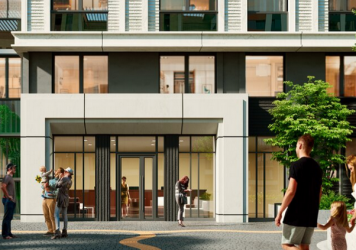 Первая очередь включает два 9-этажных дома и 30-этажную высотку с дизайном в стиле сталинского ампира, вторая очередь - это две современные 26-этажные башни «Север» и «Юг» с четкой геометрией. Интерьеры холлов оформлены мрамором, травертином и деревом, на входах стеклянные прозрачные двери. На первых этажах запроектированы ресепшен, меблированные зоны ожидания, колясочные, места для мытья лап домашних животных и колес велосипедов, оборудованные для ухода за детьми санузлы, в холле высотки первой очереди - детская игровая комната. В каждой секции от 1 до 4 скоростных бесшумных лифта.