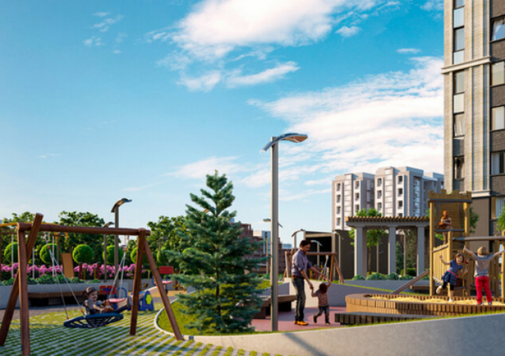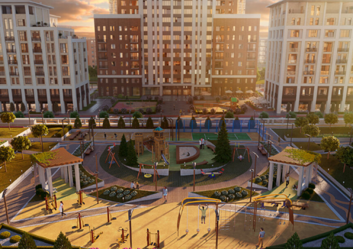 Дворы оборудованы детскими и воркаут-площадками, велодорожками, пешеходными тротуарами, по всей площади озеленение в виде газонов, цветников, кустарников и высоких деревьев. Также застройщик запроектировал внутри жилого квартала собственный парк-бульвар, где разместятся беседки, игровые городки и спортивные площадки.