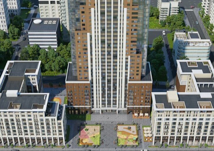 Выразительные фасады в духе новой классики. Первая очередь - ремейк сталинского ампира прямиком с исторических улиц города. Вторая очередь - современность с чистой геометрией и выразительными формами.