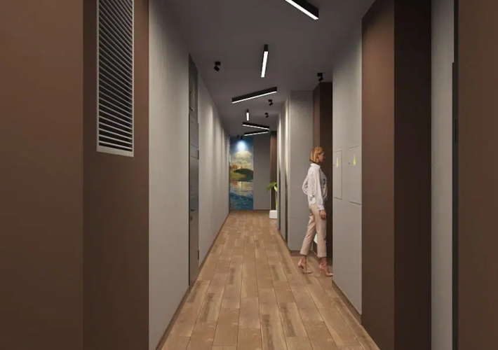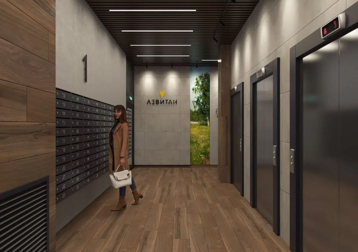 Атмосфера творчества в каждой детали. Дизайнерская отделка подъезда, лифтовых холлов и репродукции картин великого Исаака Левитана на стенах.
