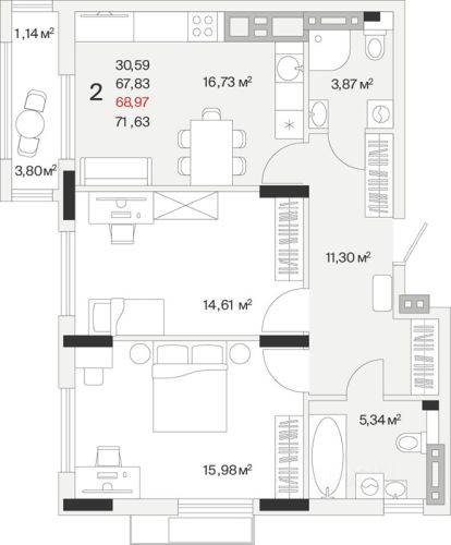 - 80,3 - 91,4 м2