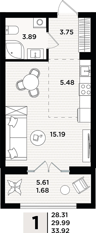 1 - комнатная