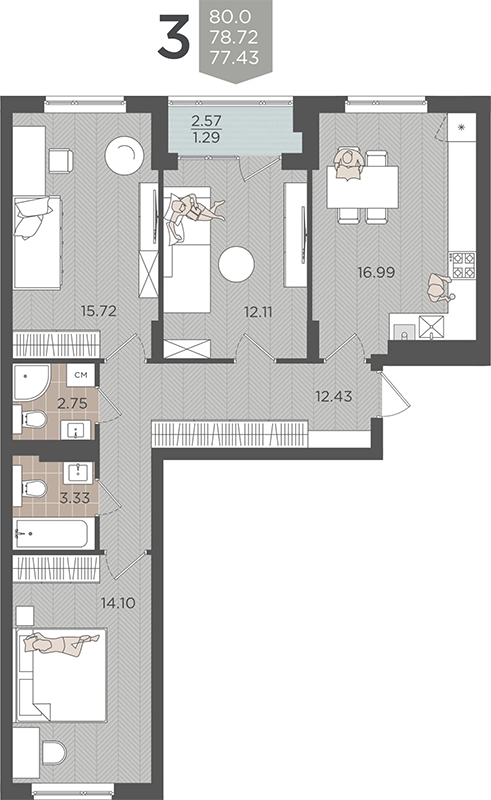 3 - комнатная