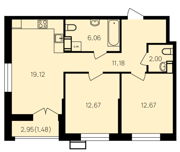 - 60,42 - 79,73 м2
