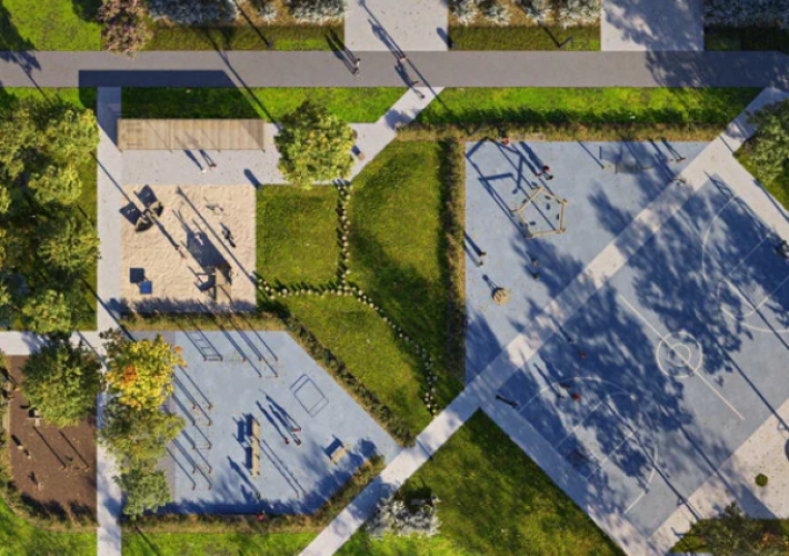 Территория проекта получит современное благоустройство: между домами появятся дворы-парки без машин, с детскими площадками и зонами для отдыха. Для автомобилистов за пределами дворов появятся наземные многоуровневые паркинги.