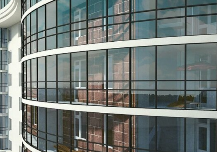Панорамное остекление лоджий в едином стиле. Все окна произведены на заводе «Новое окно», который входит в состав холдинга.