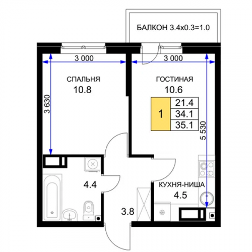 - 45,6 - 64,4 м2