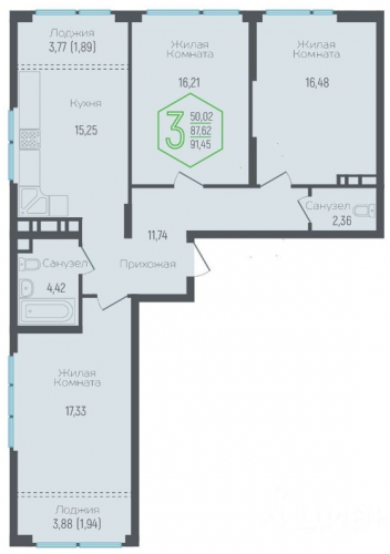 - 87 - 90 м2