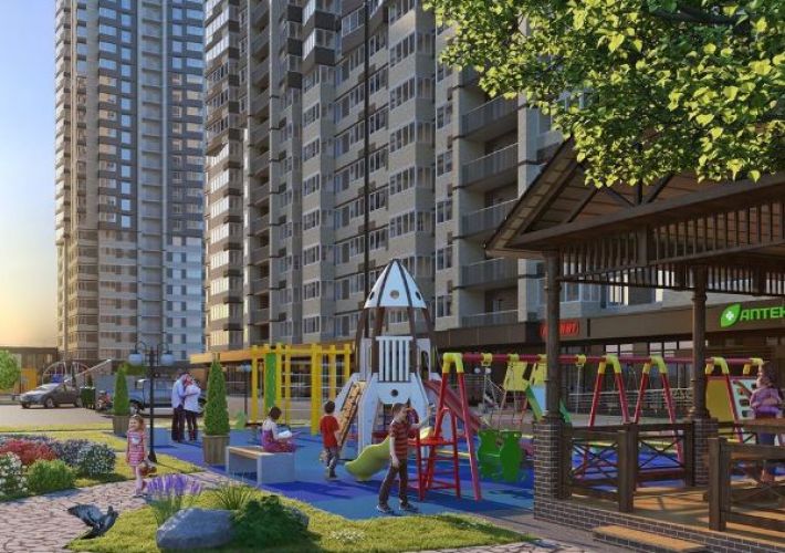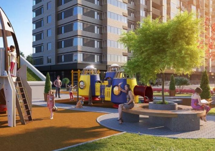 Территорию комплекса обустроят детскими и спортивными площадками, зонами досуга и отдыха.