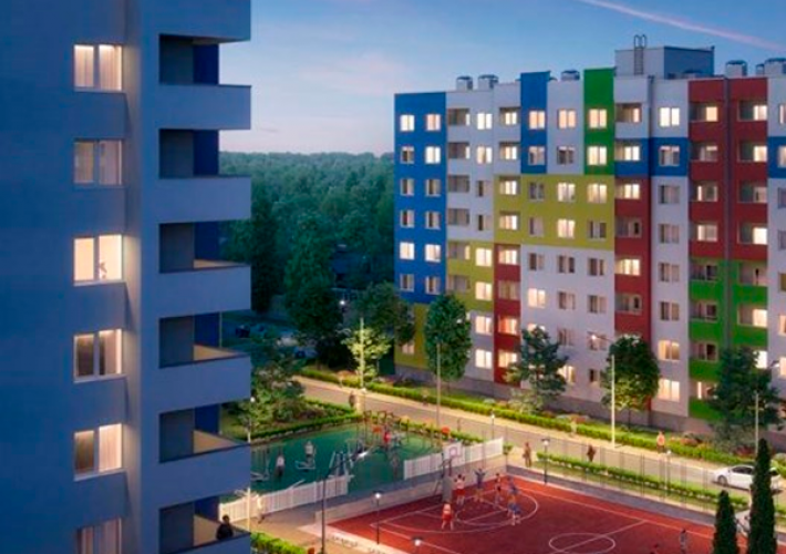 Комплекс отличается продуманными планировками квартир и обустройством двора, где предусмотрены спортивные и игровые площадки, рассчитанные на любой возраст.