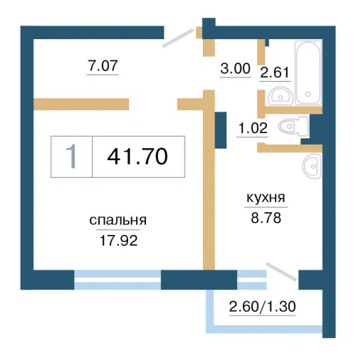 - 41,6 - 43,8 м2