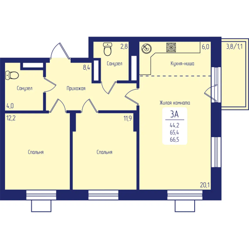 - 61,2 - 66,5 м2