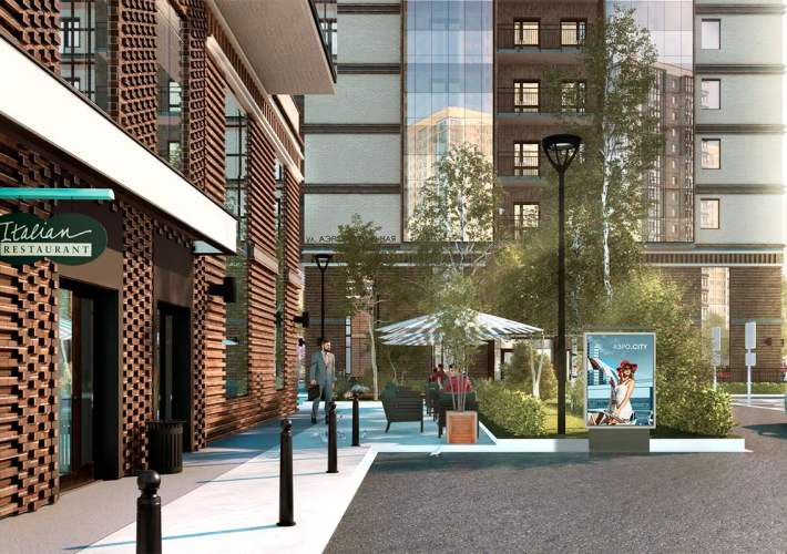 Архитектурные решения ЖК АЭРОCITY во многом вдохновлены историей места. Светлые, как будто парящие, фасады и зеркальное остекление балконов, где отражается небо.