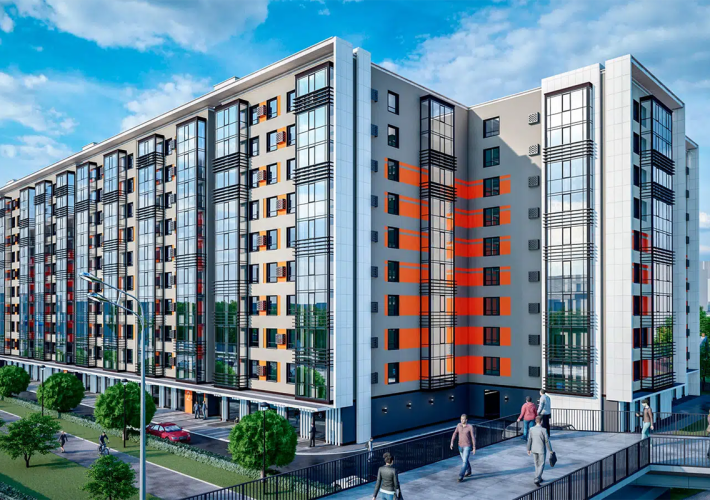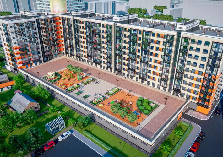 Жилой комплекс сформирован из четырех блок-секции, высота комплекса 10 этажей.