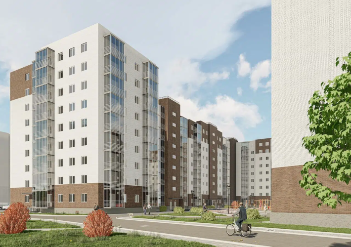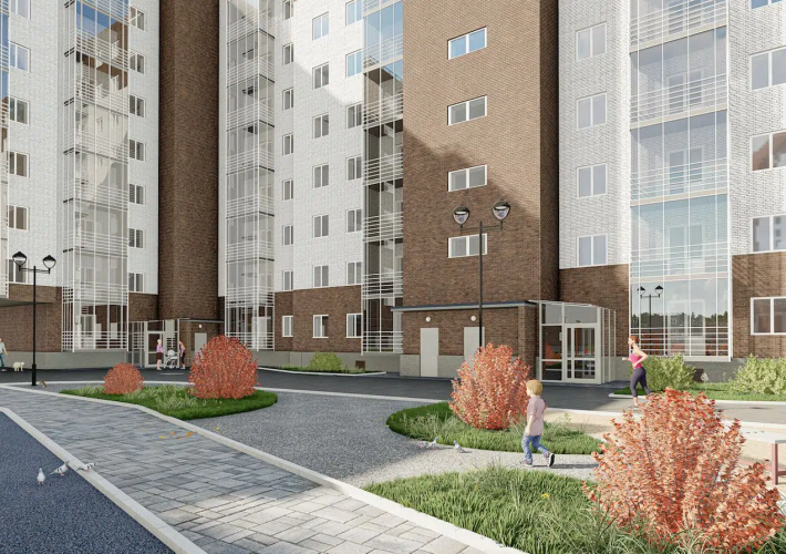Современная сдержанная архитектура жилого комплекса идеально встроена в ландшафт микрорайона. ЖК Мята состоит трех 9-этажных домов или десяти блок-секций и вместе они образуют единую архитектурную линию, занимающую доминантное положение в Солнечном.