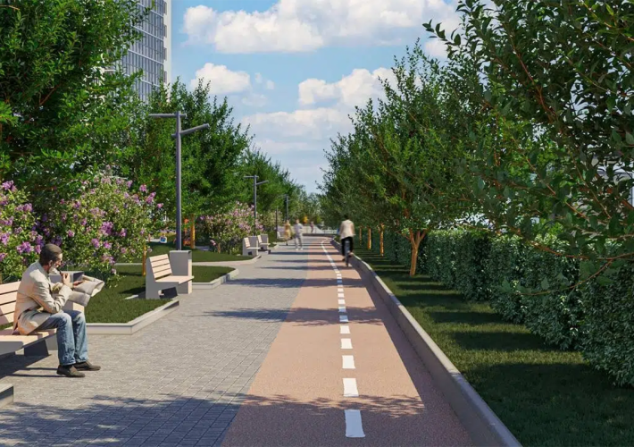 - Уютные внутренние дворы, вместительная парковка, прогулочная аллея с велосипедной дорожкой.