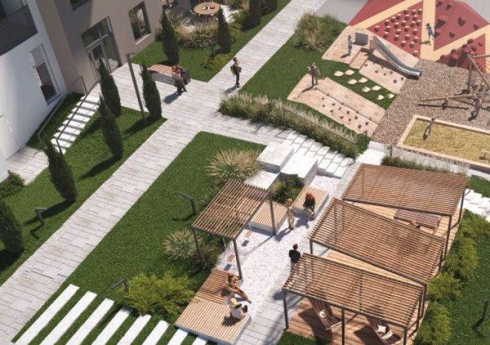 В новом квартале природа расцветает в гармонии с архитектурой. Дворовое пространство с обилием зелени, ароматом винограда и авторскими дзен-парками воплощается в ваш оазис безопасности.