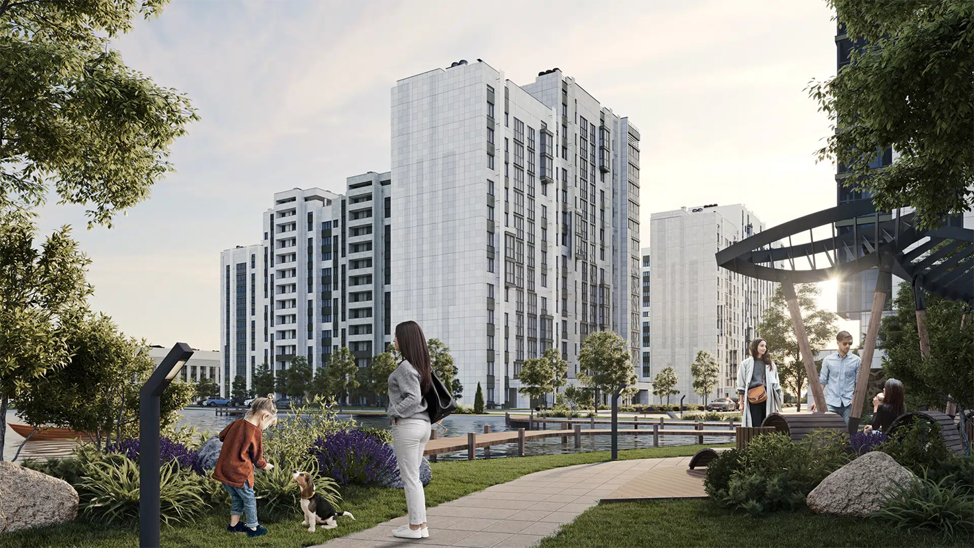Предусмотрен бульвар для пеших прогулок и тенистые тропинки у воды. Пустили сеть велодорожек, не пересекающих проезжую часть. Наполнили территорию деревьями и кустарниками с разным временем цветения, разбили лужайки – места создания новых добрососедских традиций.