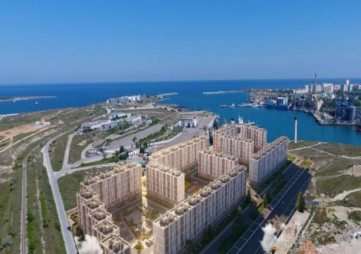 Новый жилой комплекс располагается у моря на западном берегу Камышовой бухты Севастополя, построенный по технологии префаб. Средиземноморский стиль, красивый двор, стильные фасады и завораживающий вид на море и порт.