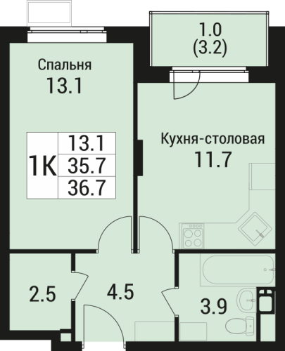 - 34,8 - 41,1 м2