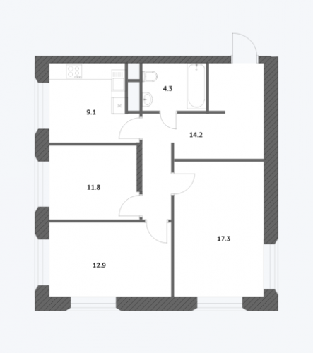 Без отделкиМосква, пос. Внуковское, ул. Анны Ахматовой, 11, к. 1-4