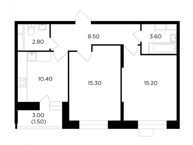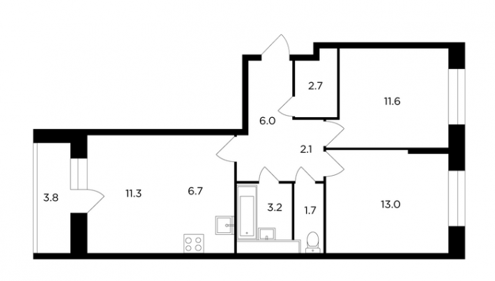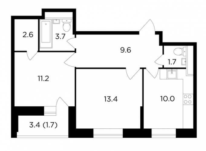 - 57,6 - 74,0 м2