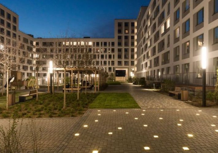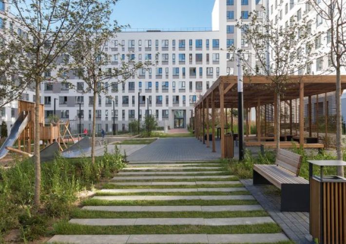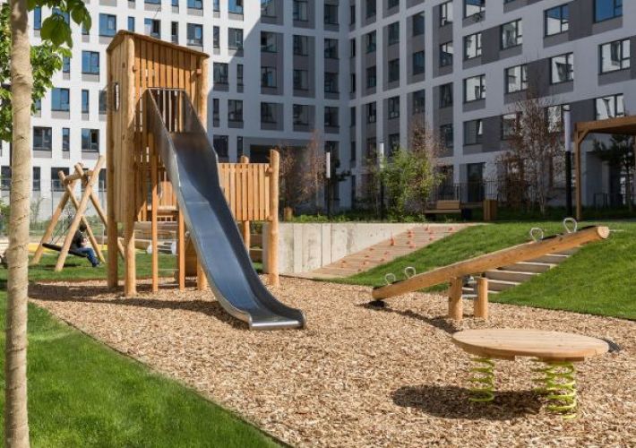Дворы закрыты от машин и предназначены для жителей. В новых домах предусмотрен подземный паркинг.