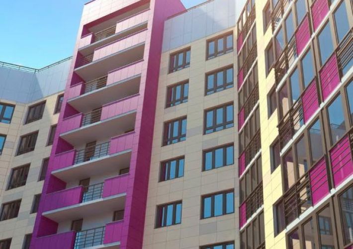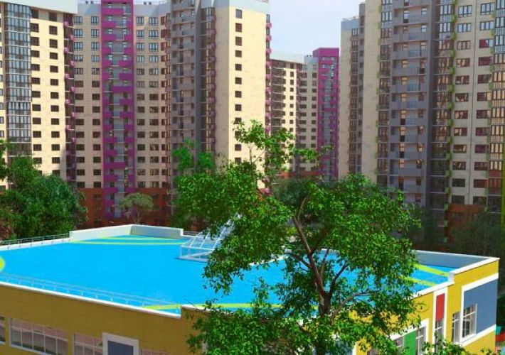 Здания в комплексе запроектированы в едином стиле, но отличаются друг от друга яркими красками. Прочности им придает жесткая монолитная конструкция, элегантности - навесные фасады из керамогранита, а легкости - красивое витражное и панорамное остекление окон.