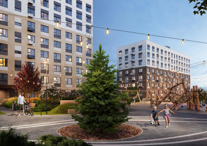 Единая галерея, соединяющая секции в рамках каждого корпуса, образует закрытое приватное пространство двора, где установлены современные игровые и спортивные площадки. Продуманное зонирование обеспечивает многообразие сценариев как для спокойного отдыха, так и для активного досуга.