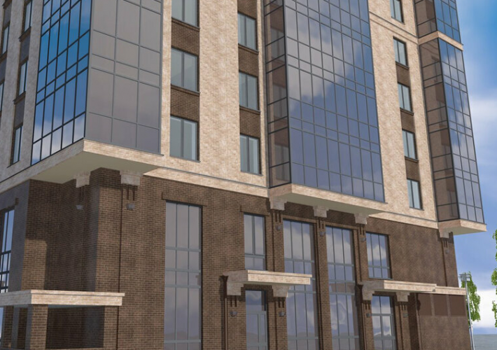23-этажное здание комплекса возводится на монолитном каркасе с кирпичным заполнением стен.