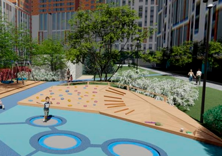 В дизайне игровых и спортивных площадок, мест для отдыха и селфи в каждом арт - объекте отражается своя стихия или часть природы: вода, огонь, дерево, камень. И в каждом дворике - свои отсылки к космической тематике или всем известным звездным персонажам голливудских фильмов.