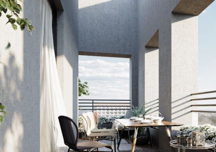 В новом проекте архитекторы предусмотрели террасы трех типов. Первый - прогулочные. Они опоясывают последние этажи самых высоких башен. С них открывается панорамный вид на город. Второй тип - террасы на стилобате. Они примыкают к квартирам на третьих этажах. Их площадь позволяет установить спортивные тренажеры, качели или уличную мебель и в теплое время года использовать это пространство как обеденную зону. Третий тип - террасы на кровле. Квартиры с таким планировочным решением предусмотрены в