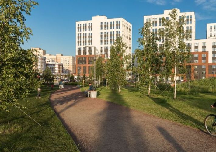 Особенностью района выступает круговой зеленый бульвар, объединяющий дома с камерными дворами, пешеходными и велосипедными дорожками, а также прилегающим лесопарком.