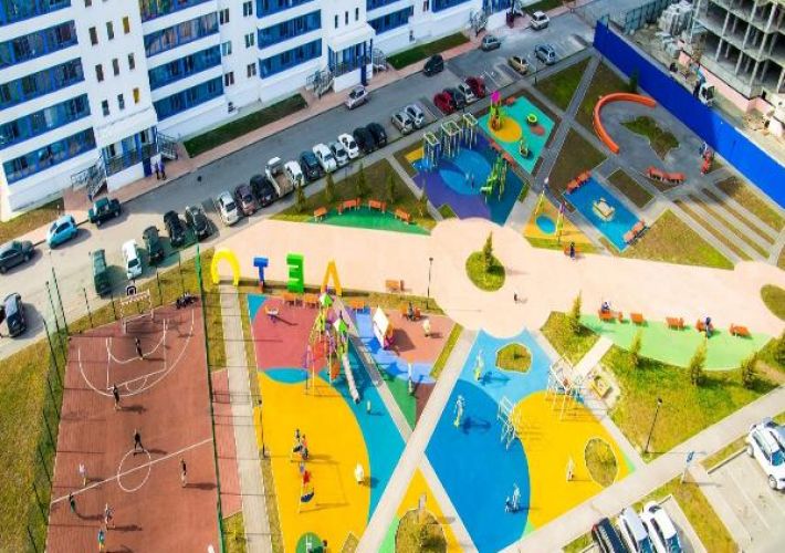 Жилой комплекс предусматривает закрытую территорию с видеонаблюдением, детскую и спортивную площадки, а также просторный паркинг на 739 мест.