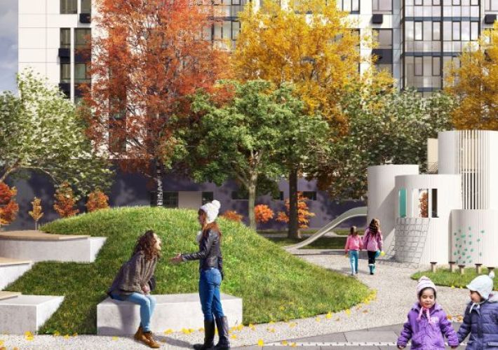 Зона отдыха для взрослых, детские площадки с безопасным покрытием, озеленение, спортивные площадки.