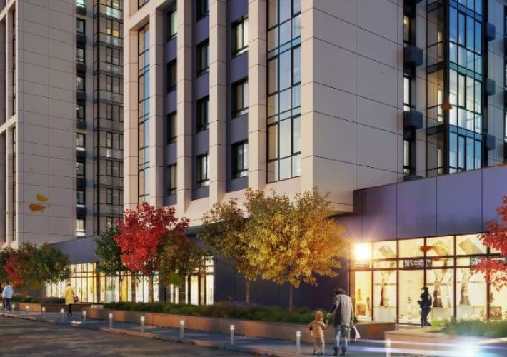 Прозрачные входные группы расположены на уровне земли. Удобное решение оценят велосипедисты, дети на роликах и подростки с самокатами и гироскутерами, мамы с колясками.